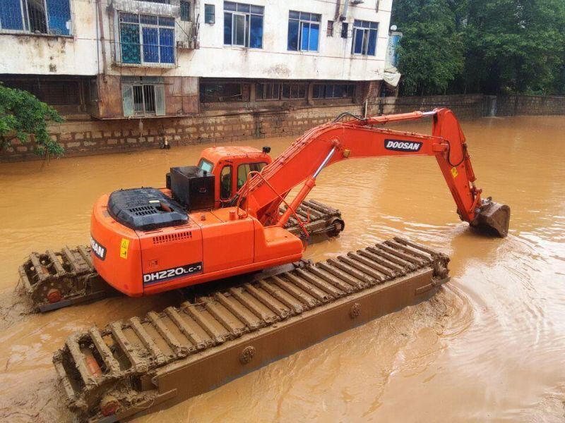 습지, 습지, 얕은 물, 물 위에 부유할 수 있는 모든 연약한 지형을 위해 설계된 특수 수륙 양용 굴삭기입니다. 잘 설계된 수륙 양용 폰툰/하부 구조 시스템은 다음과 같은 용도로 널리 사용됩니다.